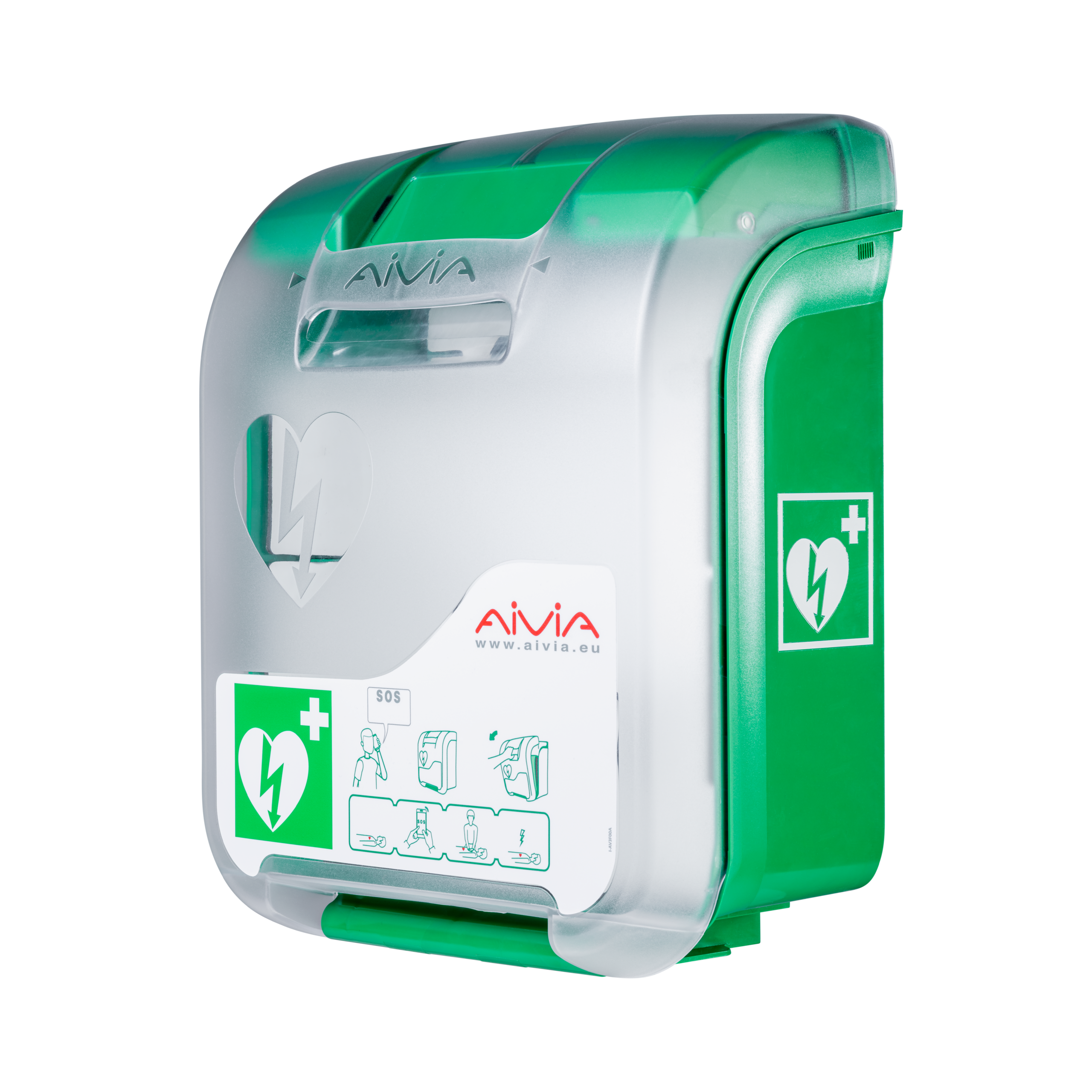 De Aivia IN binnenkast is een compacte en gebruiksvriendelijke AED wandkast, eenvoudig te installeren aan iedere muur. De kast is gemaakt van transparant polycarbonaat met een UV-werende behandeling en heeft een opvallende groene ABS-zijkant voor optimale zichtbaarheid.
