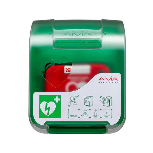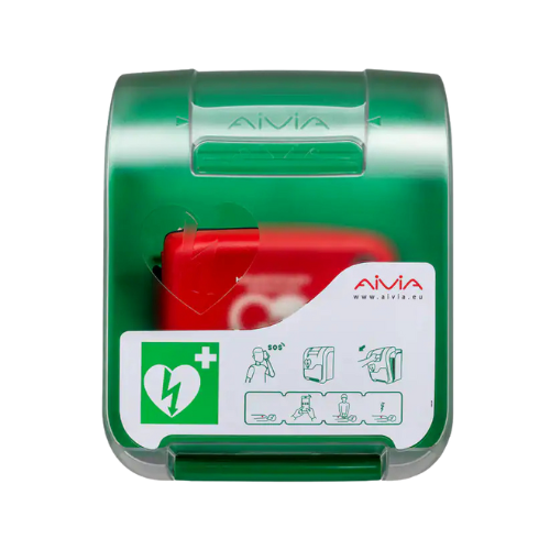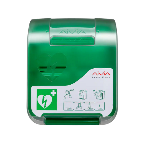 De Aivia IN binnenkast is een compacte en gebruiksvriendelijke AED wandkast, eenvoudig te installeren aan iedere muur. De kast is gemaakt van transparant polycarbonaat met een UV-werende behandeling en heeft een opvallende groene ABS-zijkant voor optimale zichtbaarheid.